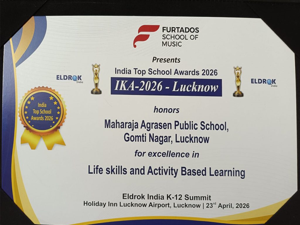 We are delighted to share that Maharaja Agrasen Public School, Gomti Nagar, Lucknow has been honored at the India Top School Awards 2026 (IKA-2026) for Excellence in Life Skills and Activity Based Learning